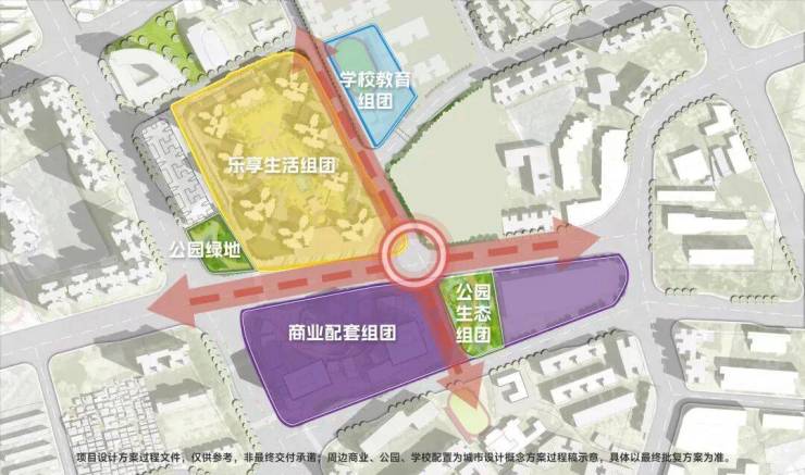 基本信息:宗地面积为64,812㎡,其中出让宗地面积为42,208㎡,计算容积率建筑面积为143,507㎡,容积率为3.4,建筑限高100米,建筑密度为28%,绿地率为35%。用地性质为居住用地兼容商业用地、中小学用地。
