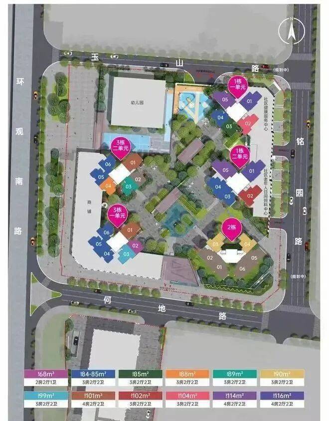 总规划1203户,可售商品房有901套,安置房56套,回迁房246套,1栋1单元3梯5户设计,其余栋数都是3梯6户设计,规划停车位1292个,车位占比约1:1.07。
