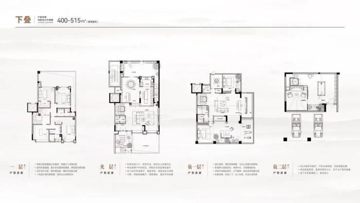 悦融居(商业)为310-330㎡大平层、183-263㎡上叠、400-515㎡下叠。
