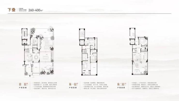 观善居(住宅)为180㎡大平层、180㎡-400㎡上下叠院;