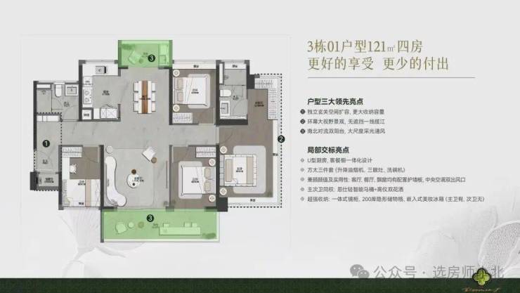目前项目货量比较多选择的就是3号楼了,这一栋户型有107-121平。