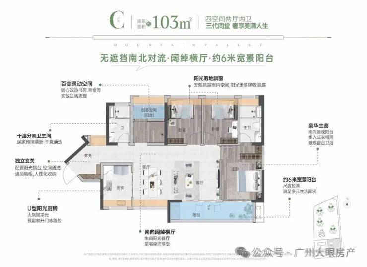 超6米宽MAX宽景阳台,南北通透一揽山林景色