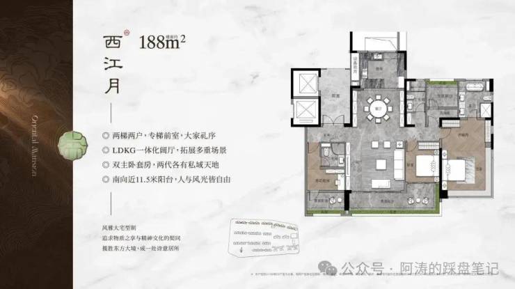 ①【板式楼栋】2.93低密府院大宅,一字板式楼栋布局,户户朝南,风光俱佳。一轴入府,以礼制中轴对称规制院落布局,尽显府院的东方美学