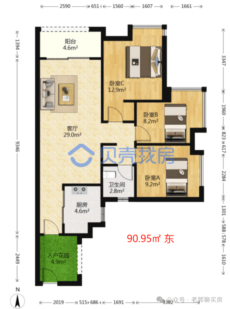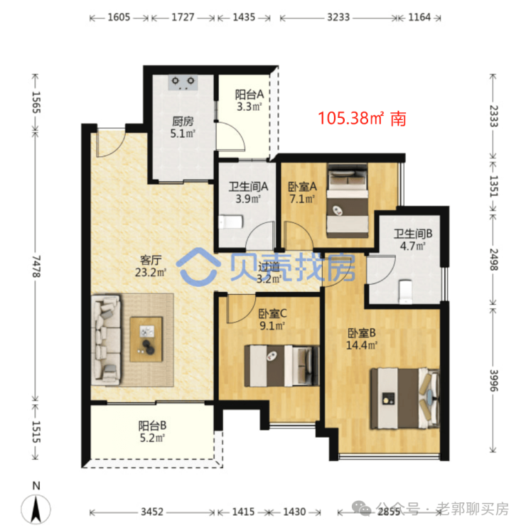 三房的话面积普遍都是上了85㎡,