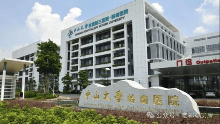 医疗这方面距离中山大学附属第三医院岭南医院大约2.5公里,电动车13分钟左右。