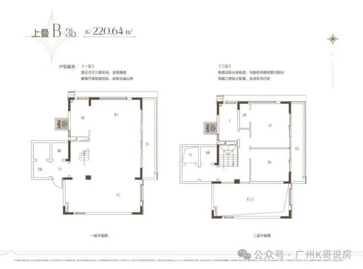建筑面积约220-265㎡,大尺度大阳台,双层大挑空设计;