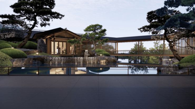 宋代建筑以白色与木色为主,项目则创新采用黑金配色,整体色调素雅自然。