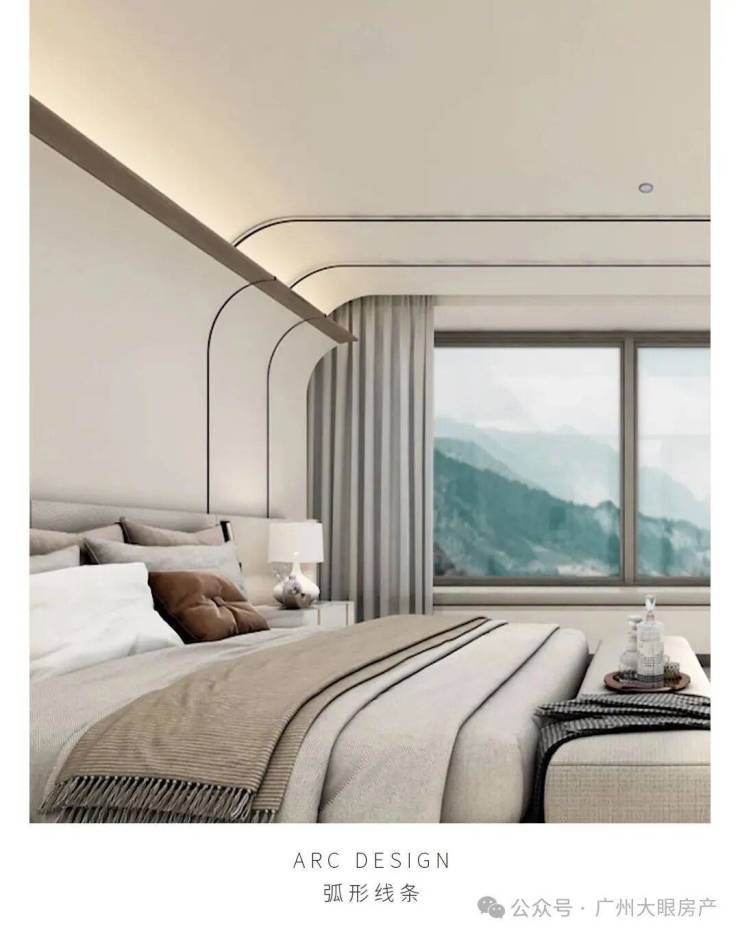 室内很多细节都有弧形元素,比如弧形玄关、圆角岛台、卧室弧形线条设计等,虽然这样的设计成本更高、耗材更多,但这样做不单增加了空间流动感,还体现了对生活细节的精心打磨,为业主营造了优雅从容的生活场域。