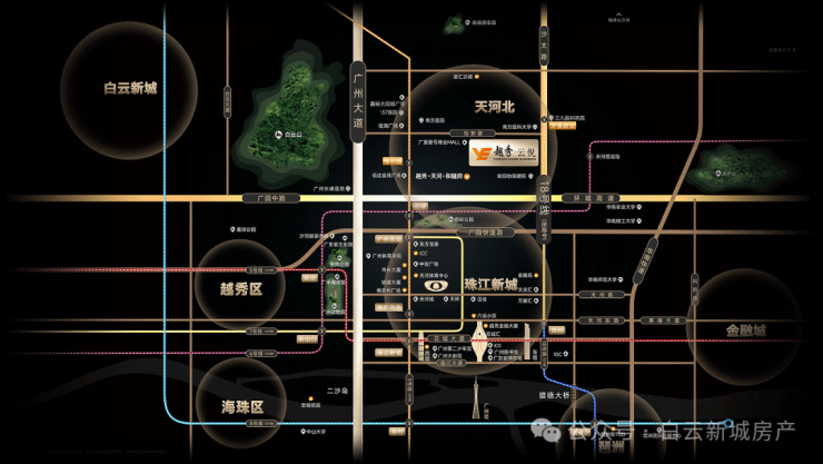 越秀·云悦项目坐落于广州市天河区与白云区的交界处,作为越秀地产在越秀怡新路地块精心打造的高端住宅项目,具有得天独厚的地理位置。该区域不仅是广州市的重要商业中心,也是城市发展的重要枢纽。在这样的区域背景下,越秀·云悦项目的规划定位充分考虑了城市的长远发展,致力于为未来居民提供优质的生活环境和配套设施。