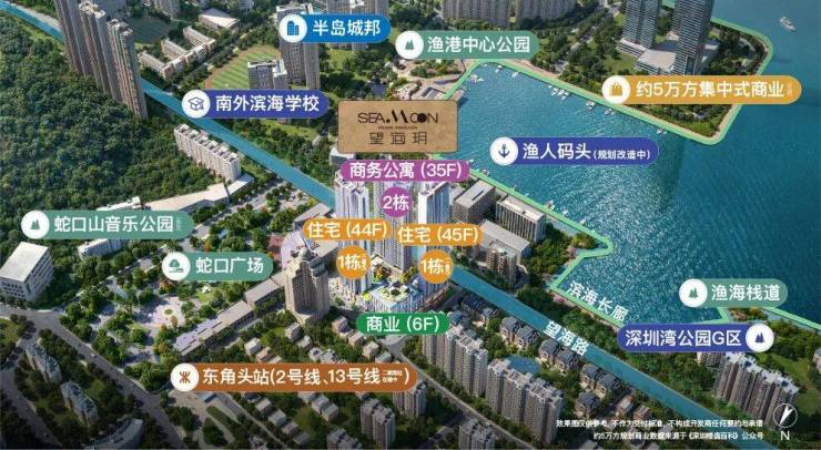 望海玥家园位于蛇口老城区,毗邻半岛城邦、南海玫瑰等豪宅区,享有“二线海景”。南侧老小区部分遮挡海景,少数房源可看海。项目享有蛇口滨海设施,如歌剧院、渔人码头、滨海长廊。