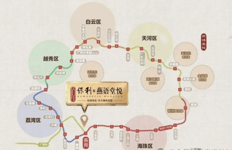 交通优势显著。项目是双地铁上盖,距离广佛线和 11 号线(建设中,预计今年通车)燕岗站仅 100 米,通过 11 号线 4 站达上涌、8 站达琶洲,轻松链接全城,11 号线作为 “换乘之王”,虹吸全广州优质资源。在建的环岛路,开车 22 分钟可达珠江新城,20 - 25 分钟可达琶洲,还能畅联广州塔、太古仓等片区景点。紧邻工业大道,交通路网发达,向北接昌岗中路、内环路,向南 5min 接驳新滘西路、环城高速,20min + 速达广州核心区。家门口纸厂公交站举步即达,周边 500m 范围内 28 条公交线路,13 处公交站点,日常出行高效便捷。