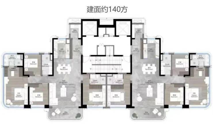 02地块规划了3个面积段,120-140-190平,都是南北对流双阳台四房。