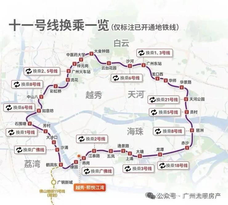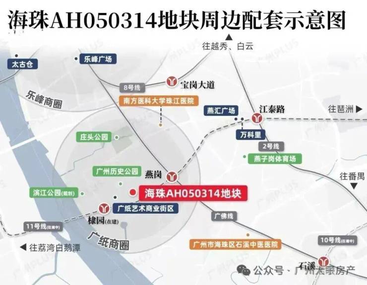 周边拥有双地铁:“换乘之王”广佛线燕岗站约400m(百度地图直线距离),广州首条黄金环城线11号线棣园站约250m(百度地图直线距离),直接打通琶洲、天河、海珠西和荔湾等区域,业主去哪都方便,7站南站、7站琶洲,轻松链接全城,虹吸广佛优质资源。