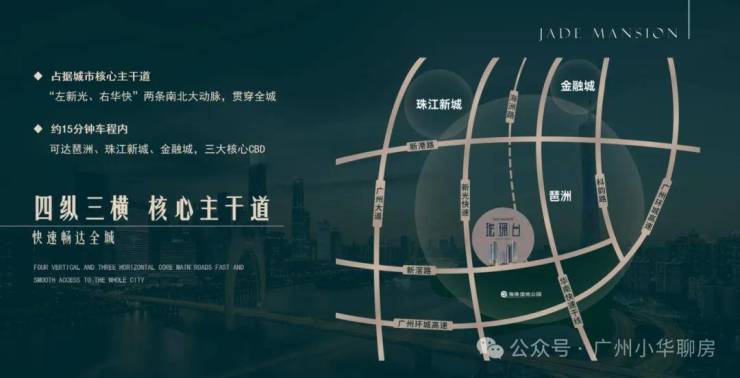 项目占据核心主干道,约15分钟车程内即可到达琶洲、珠江新城、国际金融城三大核心CBD。