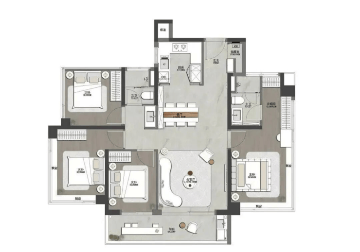 建面110平,就是5-6栋102平一样格局,也是飞机户型,相当于放大版,110的多了一个储物间,客厅房间会大点,三个次卧面积都超过9平。