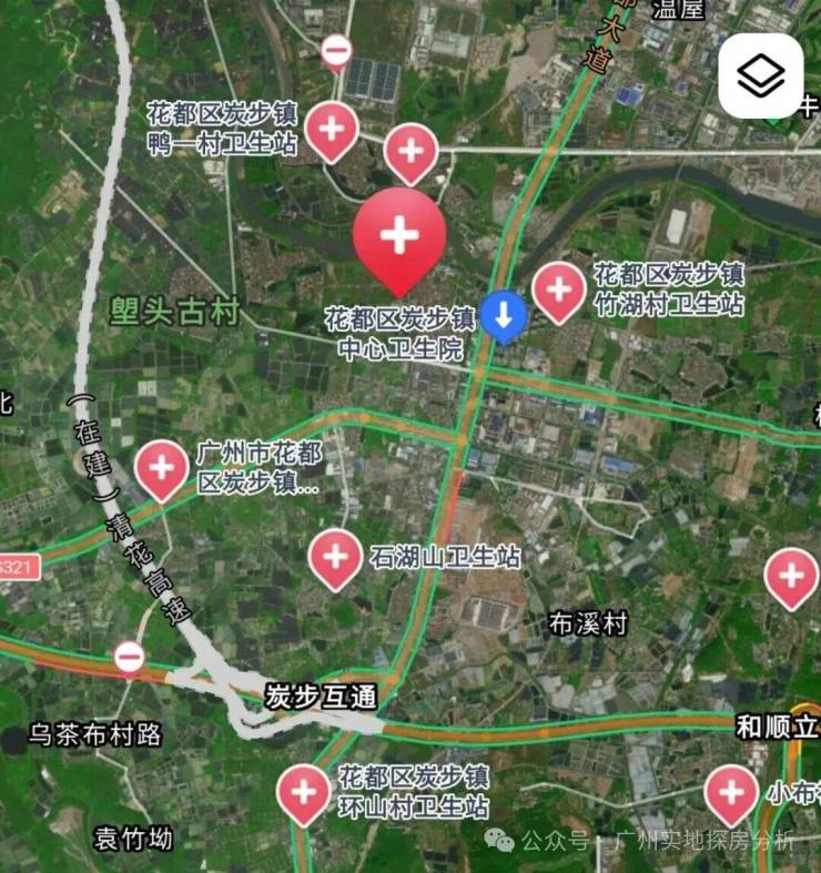 炭步医院,车程只要3分钟十分方便,三甲花都人民医院、广州中西医结合医院、花都区妇幼保健院也只有15分钟车程。