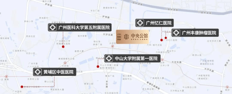 约1.5km即有中山大学附属第一医院东院、广州医科大学附属第五医院为您和家人的健康保驾护航