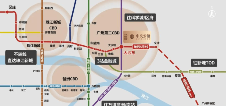 5号线——3站天河金融城,约26分钟直达珠江新城不换乘