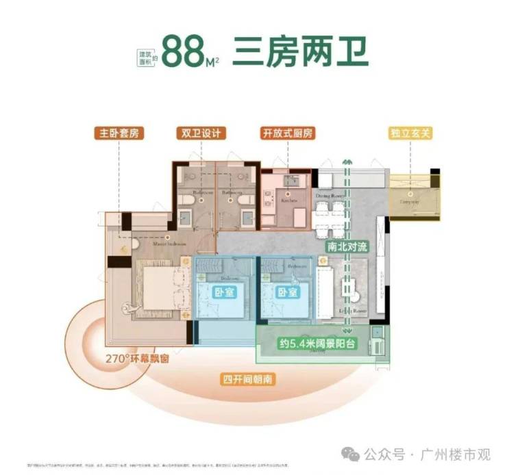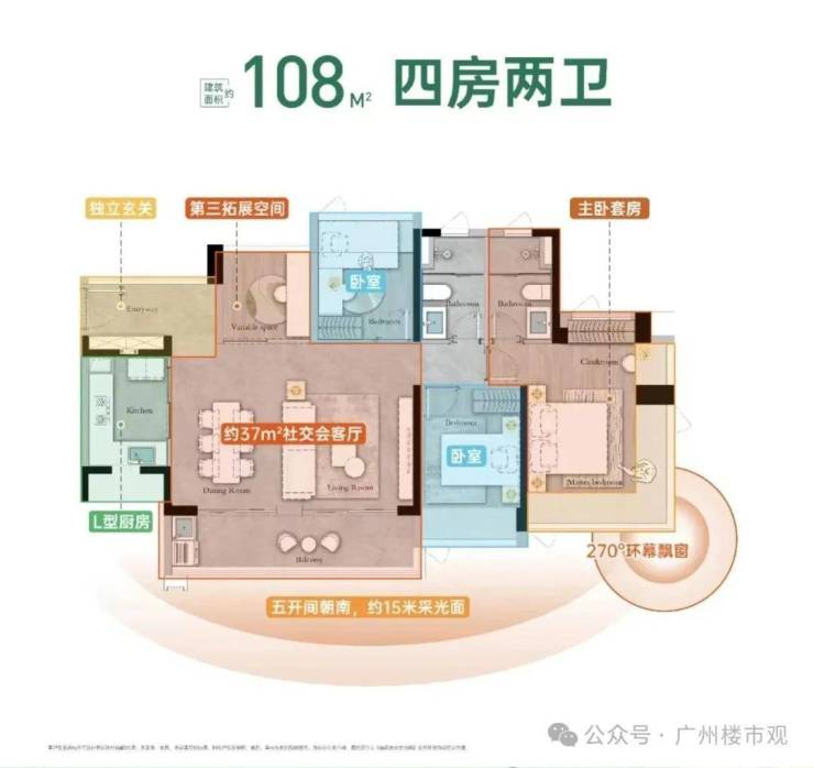 产品涵盖建面约88-108㎡三至四房,是科学城首个全面采用建筑新规设计的项目,据悉户型使用率接近100%。
