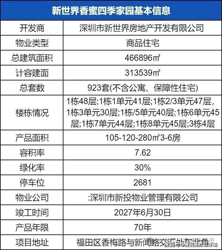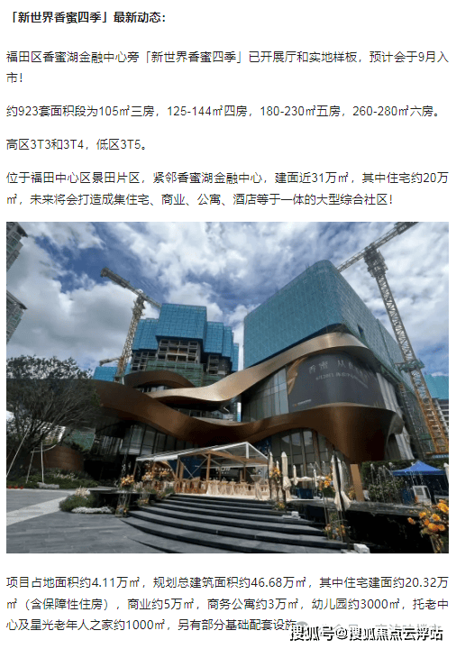 项目作为集住宅、公寓、商业、酒店为主的大型综合体,分为两个地块开发,一块为新世界香蜜国际公寓,一块即新世界香蜜四季家园。