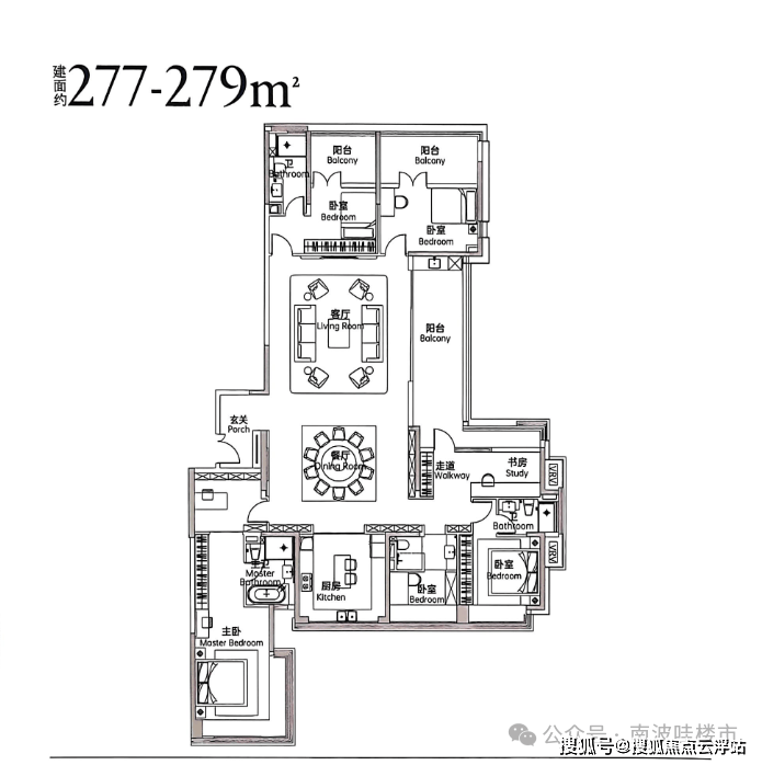 105㎡三房两卫采用房间左右侧设计,传统说法双龙抱珠,基本没有浪费空间,户型拓展率大,阳台以实体样板房为准;