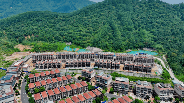 自南向北依山而建逐级错落,地形高差近100米,属于典型的山地低密度庄园豪宅