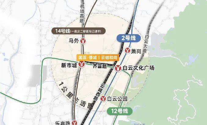 地铁2号线、 12 号线白云文化广场站400米左右,距离14号线二期新市墟站约800米,贯通白云、越秀、海珠等区域。由于紧挨市中心,自驾到天河、越秀也不会太远。通过齐富路、云城东路可快速接驳机场高速、环城高速,10分钟可达机场高速入口,30分钟左右直达天河CBD。