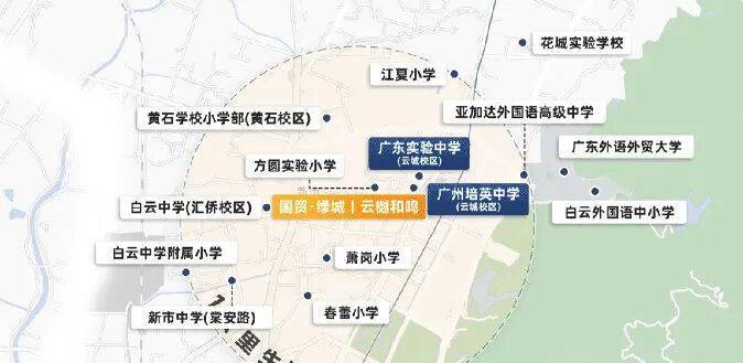 项目对面就是广州市培英中学(云城校区)和广东省实验中学(小学部),这两所学校在白云来讲都很不错,广东省实验中学是全地段摇号,不过放心,齐富路地块属于云城街道,届时也能参与。