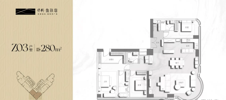 户型:约200㎡、300㎡ 、400㎡商业大平层,全南向江景,270°弧形观江客厅、多卧室观景,实现珠金琶CBD全景覆盖。