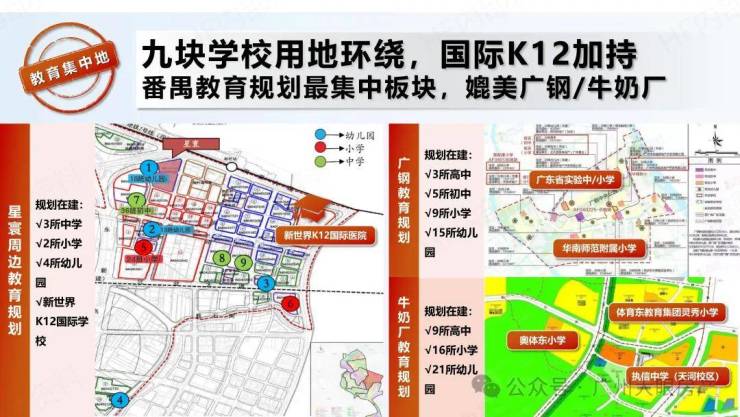 西边地块已建1所中学、南边地块规划1所18班幼儿园、24班小学,东边地块规划5块教育用地(2所幼儿园+1所小学+2所中学)
