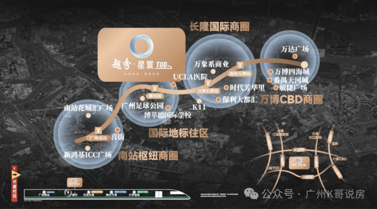 左边的南站是靠不住了,但还好右边的万博CBD还算给力,毕竟万博是整个番禺的拳头板块,全区的优秀资源都会优先投入万博,星寰三站地铁即可到达万博,还是能蹭到一些红利的。