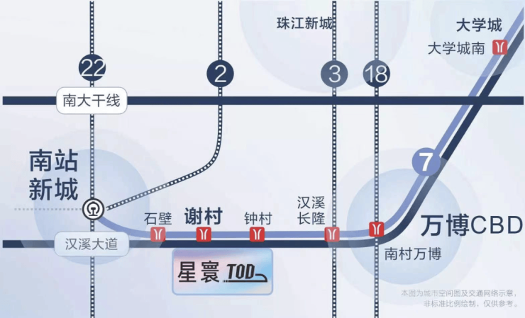 项目位于广州番禺南站板块,汉溪大道边上,临近地铁7号线谢村站,距离仅500米!未来发展也依托于南站辐射。