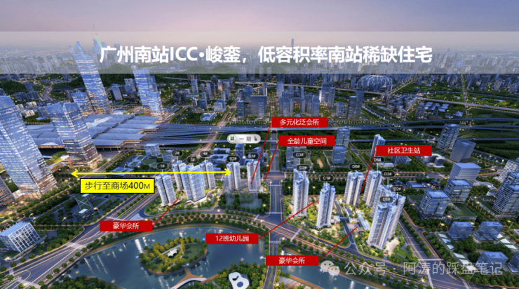 广州南站核心圈内稀缺住宅用地(4 平方公里核心区内,住宅建筑指标规划仅约 39 万㎡,峻銮约占 46%)