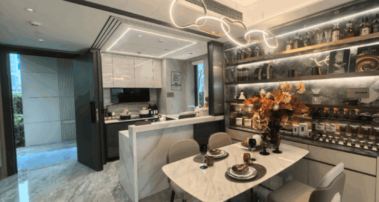 像炉灶“防干烧”功能、够能“装”的橱柜、极为高效的“洗-切-炒”动线,都能在江湾潮起看到。