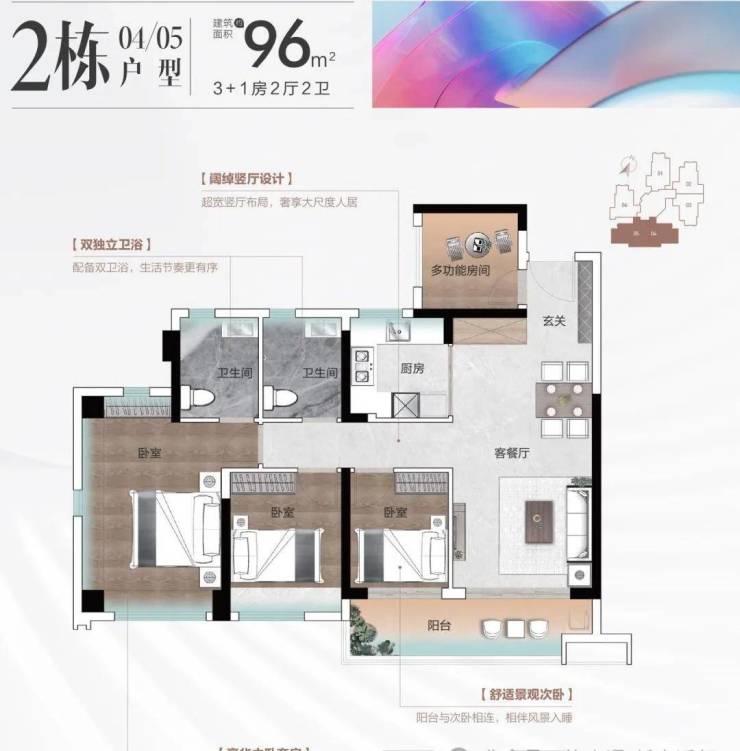 【户型产品】:建面约67-97㎡三房至四房