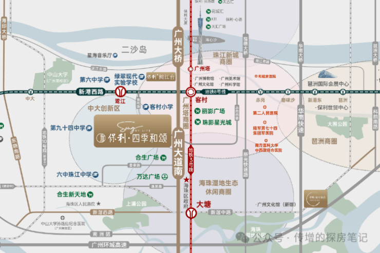 周边还有多个公园和绿地,如赤岗公园、江南西公园、海心沙等等,都是兼顾优美环境和休闲空间的好去处。