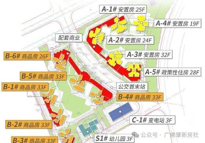 小区配套:整个项目,以中间规划路为界,左侧是6栋商品房,右侧是5栋安置房(含1栋公租房),配建有1所9班幼儿园、托儿所和公交首末站,1.8万㎡围合式大园林及1.5万㎡红线内外绿化。