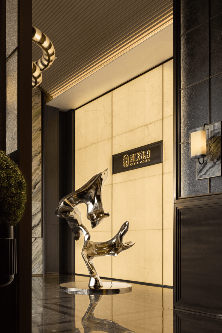 奢石、古铜金属、艺术拼花、定制屏风,奠定了空间现代优雅的设计理念,创造了新的尺度与不同的层次,为艺术预留足够的留白。