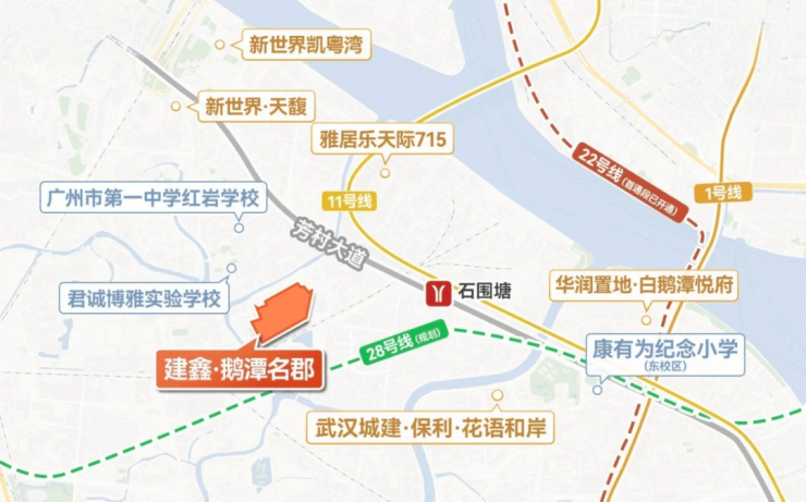 项目的核心优势首先在于其 “白鹅潭发展核心区位的成长潜力与成熟现状的平衡” 。项目地处白鹅潭商务区重要辐射板块,既能享受区域未来升级带来的价值提升红利,又能依托荔湾老城现有的成熟商业、医疗、交通等生活配套,兼顾了发展的前瞻性与生活的即享性。其次, “优质教育资源的便捷可达与人文氛围浸润” 。荔湾区教育资源底蕴深厚,项目周边通常分布有优质的公立学校,加之白鹅潭区域规划引入的高标准教育配套,为子女成长提供了稳定且富有潜力的就学环境。再者, “建鑫集团本土开发的务实品质与口碑” 。作为深耕广州的开发商,建鑫集团通常以扎实的工程质量和务实的社区规划见长,注重产品的实用性与性价比,为项目提供了可靠的品质基础。