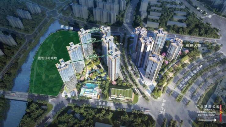 项目西侧规划6幢26-33层高层住宅,采用T5风车型全南向布局,得房率普遍超100%。社区拥有1.8万㎡中央园林,并享有1.5万㎡社区内外绿化及江景资源,打造白鹅潭高端品质住宅。