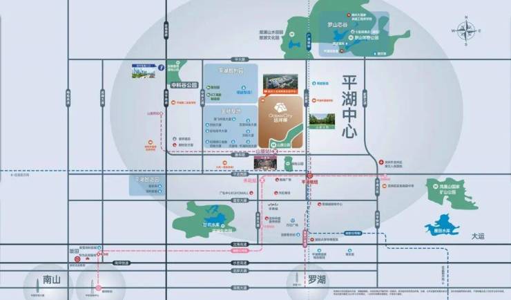 平湖,深圳几何地理中心,拥“1枢纽+2城际+3地铁+4快速路”的立体枢纽级交通。