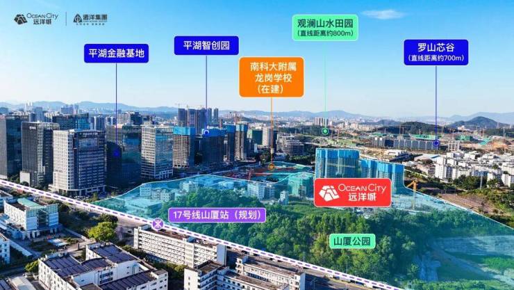 深圳远洋城,超百万方全配套综合大城,家门口南科大龙岗附属实验学校(在建中),家门口山厦公园,规划有3所幼儿园、约4万平米商业、文化活动中心、文化主题园林、四大主题泛会所架空层、写字楼等,以古树广场搭建人文住区的首开地块,为大城幸福生活赋能。