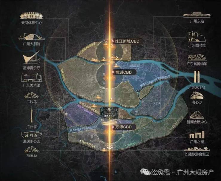 同时也属于广州中轴之上,串联珠江新城、琶洲、万博三大核心CBD,东塔、西塔、广州塔等广州城市级地标建筑均分布其中,享受最顶级城市资源。