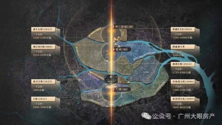 广州黄金中轴之上,千万级豪宅鼎立其间,呈现出“2+1"的豪宅分布格局。