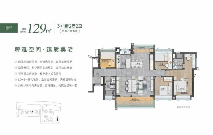 户型面积:建面约72-105㎡3+1房、110-143㎡阔境臻品