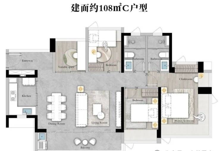 产品涵盖建面约88-108㎡三至四房,是科学城首个全面采用建筑新规设计的项目,据悉户型使用率接近100%。