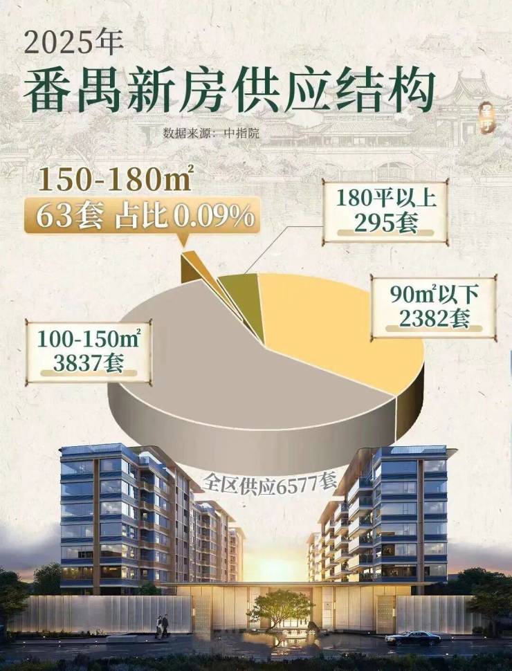 再看新房市场,这个面积段的供应也极少,2025年全年只上市了63套(番禺供应6577套,来源:中指院),占比连1%都不到。