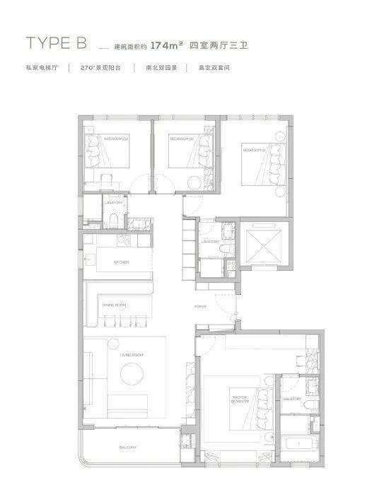 168㎡四叶草户型 四室两厅三卫