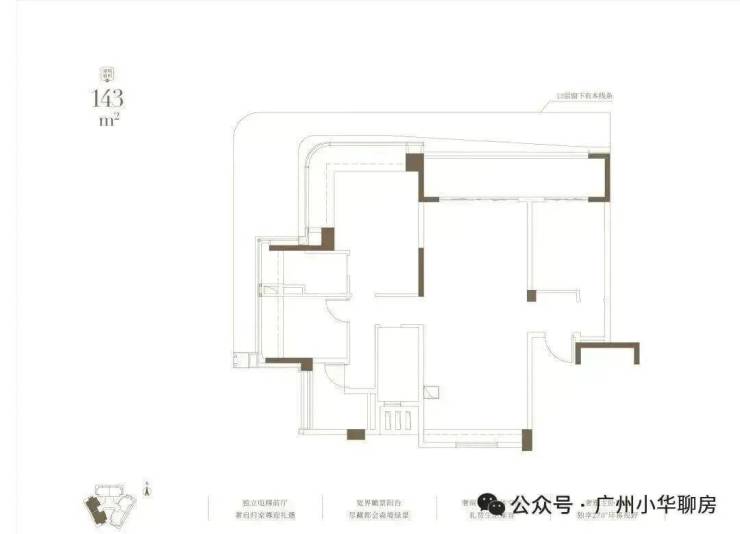 其中,约133㎡北侧看白云山,约143㎡西南向,约177㎡东南向。