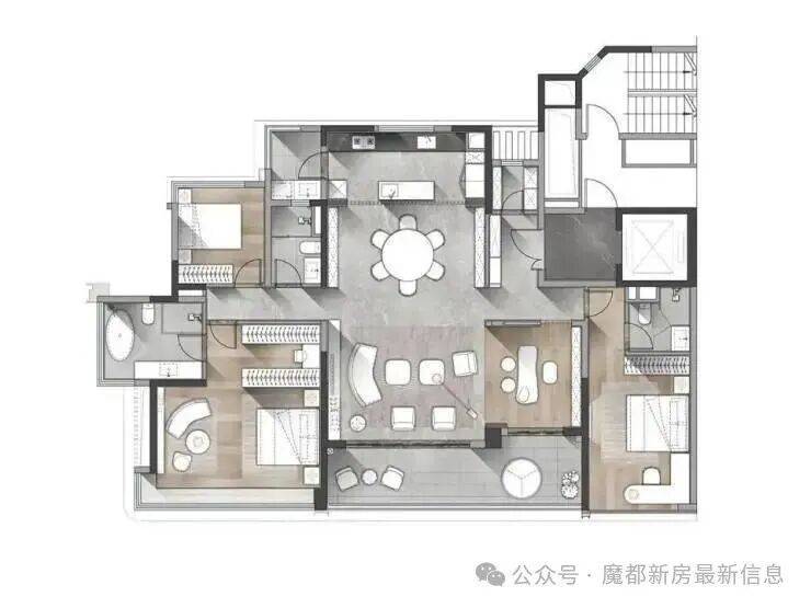 中海·映澜台位于海珠区石溪村,依托珠江一线江景资源,营造现代都市精英的理想生活场所。项目整体设计融合新加坡JTL、台湾近境及宝贤华翰等国际知名设计团队的理念,强调人与自然的和谐共生。社区内部规划五星级度假酒店式观江平台花园,约50米瞰江泳道和无边际泳池,户户拥有最大化的江景视野。项目在空间设计上融入三大健康体系,包括先天健康、科技健康和心灵健康,通过自然引入、科技优化和空间布局提升居住体验,实现身体与心灵双重满足。每一处细节从景观、材质到户型布局都考虑居住舒适性,让住户在繁华都市中享受宁静、私密和生活美学。